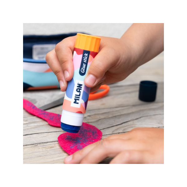 Lepiaca tyčinka Milan uľahčuje každodenné lepenie v škole aj doma. Modré lepidlo pomáha presne určiť miesto nanesenia, takže používateľ vidí, kde lepidlo aplikoval. Po zaschnutí farba zmizne a výsledok zostáva čistý a estetický.