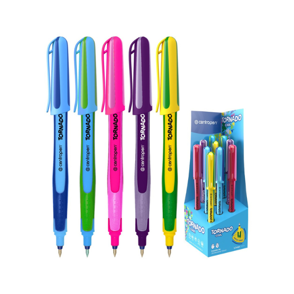 Pero Tornado Cool patrí medzi obľúbené guľôčkové perá vhodné do školy aj na domáce použitie. Ponúka ergonomický trojuholníkový tvar, ktorý podporuje správny úchop a zvyšuje komfort pri písaní.