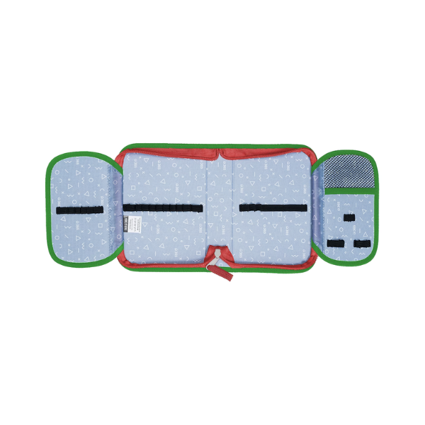 Vo vnútri nájdeš až 24 pevných gumičiek rôznych veľkostí. Tie bezpečne udržia pastelky, ceruzky, perá aj ďalšie školské potreby na svojom mieste. Do širších gumičiek jednoducho uložíš pravítko, strúhadlo alebo gumu. Vďaka tomu zostane obsah peračníka prehľadný a dobre organizovaný.